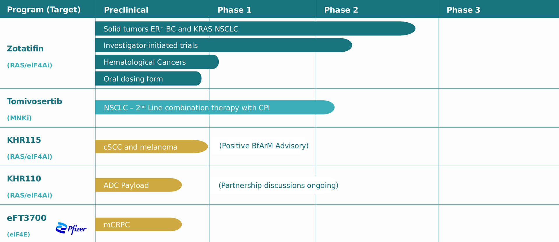 In addition to clinical-stage programs, we are advancing a diversified portfolio of early-stage projects spanning PHB1/eIF4A small molecules and ADC payloads, CDK8 inhibitors, ERK3 modulators, and antiviral research.